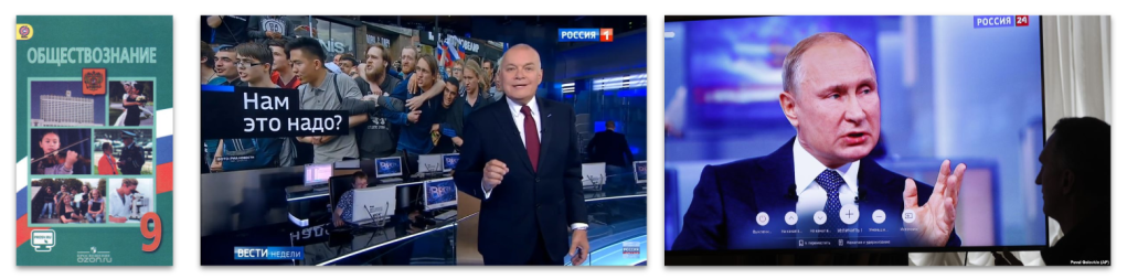 I started with a discourse of non-participation. It’s about an enormous amount of work that the state does to educate people not to participate by themselves and leave ‘social change’ to those in power. This analysis evidently shows how Russian people lack essential experiences of democratic praxis, while the mere idea of participation is fully represented through the state. Thus, going against the state does not make much sense to them, the state authorities ‘are’ the power itself. In the paper, I analyzed the most widespread social studies textbook, how news covered protests and annual conferences with Putin to see how the discourse of non-participation is propagated and normalized.